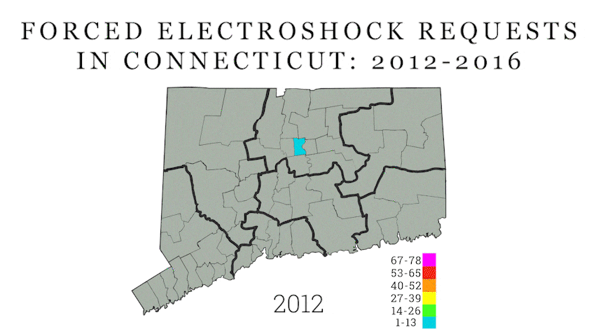 Recently acquired data from the State of Connecticut Office of the Probate Court Administrator shows exactly how many times mental health facilities in Connecticut filed a request to the state probate court to perform involuntary shock treatment dating back to 2012.